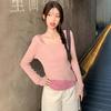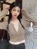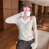 Mishow Kadınlar için Örme Gömlekler 2024 Yeni Kore Tarzı Slim Fit Vintage Yama İşi Tasarım Uzun Kollu Kazak Üstler MXC43Z0211