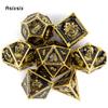 7 Pcs Black Golden Skull Metal Dice Hollow Metal Polyhedral Dice Set Suitable for Role-Playing RPG Board Game Card Game