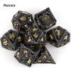 7 adet Siyah Altın Ejderha Metal Zar Içi Boş Metal Çokyüzlü Zar Seti Rol Yapma RPG Kurulu Oyunu Kart Oyunu için Uygun