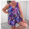 Kadın Omuz Askılı Mayo Pembe Kiraz Çiçekleri Baskılı Bikini Tankini Mayo