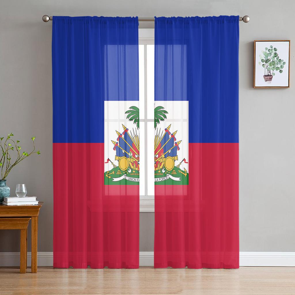 Haiti Ulusal Bayrak Günü Tül Perdeler Oturma Odası İçin Şeffaf Perdeler Yatak Odası İçin Mutfak Pencere Perdesi