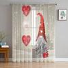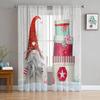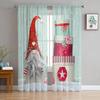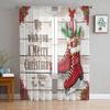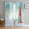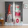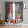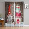 Christmas Gnome Wood Grain Snow Tulle Curtains For Living Room Decoration Modern Chiffon Sheer Voile Christmas Curtains