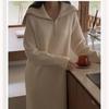 Uzun Kore Tarzı Tembel Tarzı Yaka Örme Elbise 2024 İlkbahar Sonbahar Yeni Tasarım Düz Renk Kazak Taban Elbise