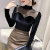 Sexy Velvet Women Blouse Autumn Vintage Style French Waist Wrap Scarf V Neck Tops Pleat Long Sleeve Slim Fit T Shirt 29072