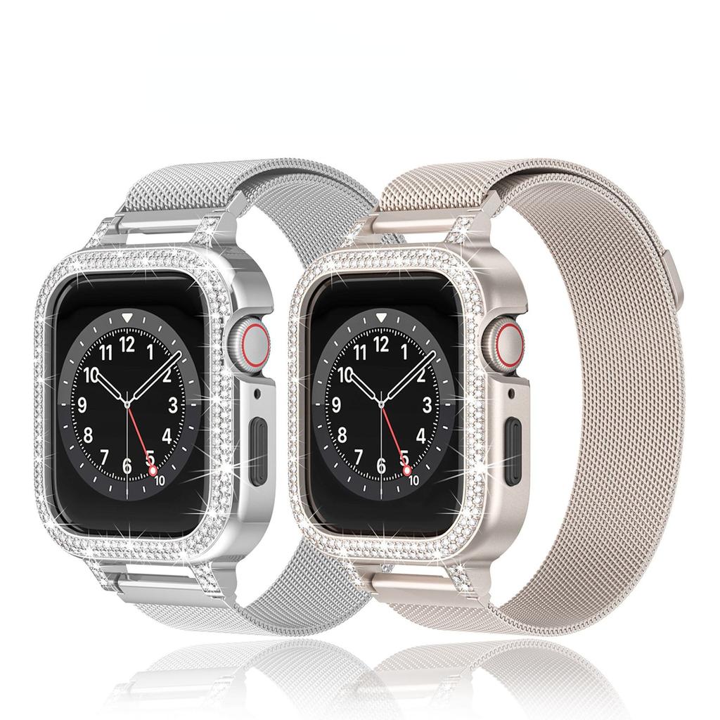 Luxury Metal Strap + Case For Apple Watch Series 9 8 7 6 5 SE 4 38/40/41/42/44/45mm Diamond Pearl Bracelet Band For iWatch UItra 2