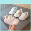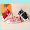 Yuvarlak burunlu pembe desenli bir çift spor ayakkabı, düzenli bir stile sahiptir