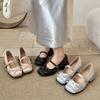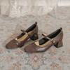 Fransız Marie Jane, düz kafalı, retro yüksek topuklu, kalın topuklu, kare burunlu tek ayakkabılar.
