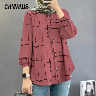 Kadın Uzun Kollu Yaka Boyun Büyük Boy Bluz Üst Vintage Bayanlar Çiçek Baskı Gevşek Artı Boyutu Basit Gömlek