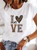 Kısa Kollu Rahat Bayan Moda Kadın Grafik Tişört Kadın Aşk Kalp Suluboya Tatlı Baskı Yazlık T-shirt Giyim Tişörtler