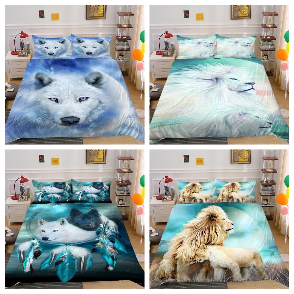 Bedding Set Cover Lion Dog Cat Comforter Duvet Cover Set Bedroom Decor Pillowcase