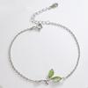 S925 Gümüş Basit ve Şık Yeşil Yaprak Şube Bilezik Kadınsı Işık Lüks Küçük Taze Gümüş Japon ve Kore El Takı