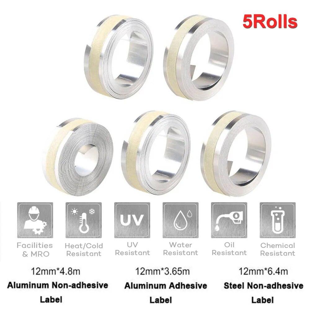 5 rulo 31000 35800 32500 paslanmaz çelik/alüminyum dymo bant 12mm kabartma bandı yapışkan olmayan/yapıştırıcı DYMO M1011 için uyumlu