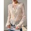 Standı Yaka Uzun Kollu Perspektif Seksi Gömlek Nakış Çiçek Tığ Işi Dantel Içi Boş Tee Üst streetwear