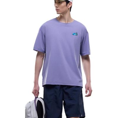 Anta Solid Color Round Neck Pullover Short Sleeve T-Shirt Unisex Tops Light-Water-Purple 152328107-2