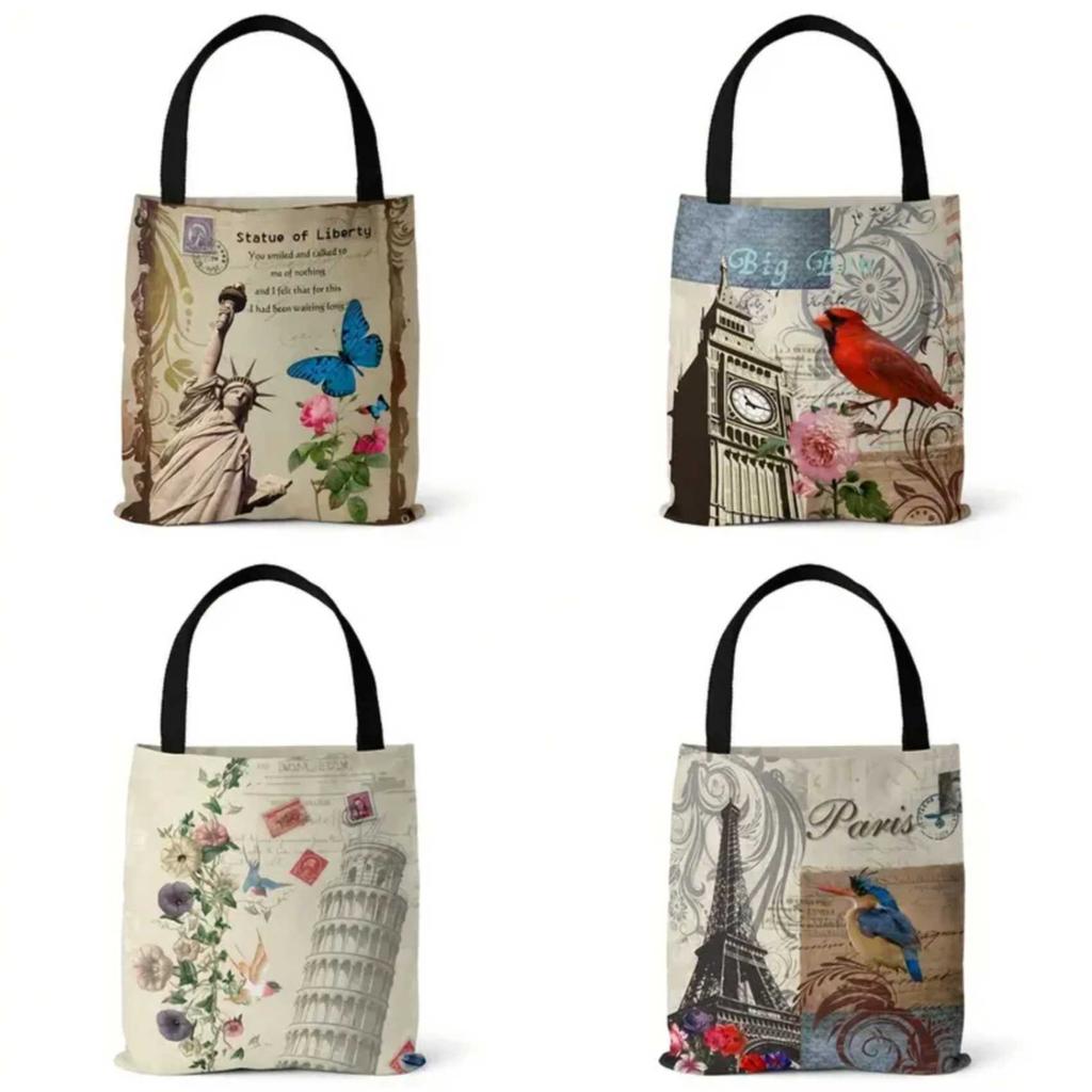Dünyaca Ünlü Landmark Bina Serisi Kanvas Çanta Dijital Baskı Çanta Kadın Üst Saplı Çanta Omuz Çantası