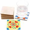 Hediye Kutusunda Dijital Baskılı AHŞAP Bardak Altlığı Seti. Bardak altlıklarının alt kısmında bulunan KEÇE TABAN, mobilyalarınızı korurken istenmeyen dökülmeleri ve dağınıklığı önler.