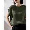 T-shirt high-end western-style small standing collar women's pleated spring new loose and slimming fashion short sleeved top
