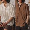 Style: Embrace simplicity and style with this men's shirt featuring a classic solid color design, lapels, and crocheted cutout short sleeves, perfect for a casual yet fashionable look.