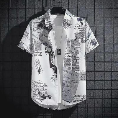 Summer Men Shirt Retro Abstract Print Half Sleeves Hip Hop Style Loose Contrast Color Single-breasted Turn-down Collar Quick Dry Soft Breathable Top