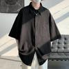 Erkek Kısa Kollu Gömlek Çok Yönlü Düz Renk Büyük Boy Erkek Kabarcık Gömlek Ceket