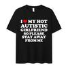 Otizmli Kız Arkadaşımı Seviyorum Tişörtü Komik Otizm Farkındalık Ayı Erkek Arkadaş Tişört Üstleri Yuvarlak Yaka Rahat Temel Tişörtler