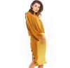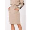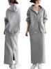 Женский костюм из худи с капюшоном и юбкой прямого кроя с разрезом сзади, сшит из натуральных материалов.
