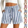 Women's Shorts With Pockets Fashion Elastic Waist Soft Casual Striped Pajama Shorts