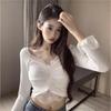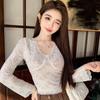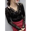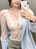 2024 Blusas Mujer De Moda Seksi Dantel Bluzlar Kadınlar için V Yaka Uzun Kollu Gömlek Kırpma Üstleri Mizaç Kore Şık Vintage Bluz