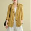 Cotton and Linen Suit Short Jacket for Women's Artistic Oversized Loose Casual Long Sleeved Suit Top