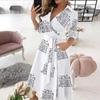 Women V-neck Dress Solid Color Half Sleeve Dress Printed Slim Dress Party