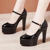 Siyah Kadife Yuvarlak Baş Yüksek Topuklu Su Geçirmez Platform Moda Tokalı Kadın Ayakkabıları Siyah Seksi Büyük Beden 42 Ayakkabı Kadınlar için 2023