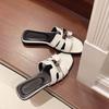 Women Slippers Peep Toe Flat Heels Metal Decor Designer Ladies Mules