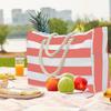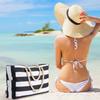 Stylish Design: Elevate your beach style with our Striped Beach Bag featuring a professional design with 1 exterior top zipper closure, 2 side pockets, and a comfortable rope handle for easy carrying. Stay organized with 1 interior pocket and enjoy the added protection of 2 layers of fabric.