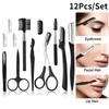 Paslanmaz Çelik Katlanır Kaş Düzeltici Yeni Başlayanlar İçin Güzellik Düzeltici Makas Siyah Tarak Kaş Klipsi Kirpik Fırçası Seti 12 Parça
