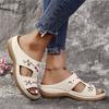 Yaz Kadın Kama Sandalet Premium Ortopedik Burnu açık Terlik Vintage kaymaz Deri Rahat Kadın Platformu Işlemeli Ayakkabı