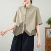 Summer Women Short Sleeve Blouse Casual Oversized Pocket Irregular Patchwork Shirt Ladies Lapel Top