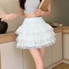 DX~~Kadınlar için yeni yazlık beyaz yüksek bel inceltici A kesim kabarık etek için yüz pileli kek kısa etek