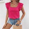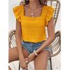 Kadın Yazlık Örme Jakarlı Fırfırlı Kare Yaka Kısa Kollu Düz Renk Üst
