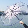 93cm Şeffaf Berrak Şemsiye Kiraz Çiçeği Desenli Şemsiye 3 Katlı Şemsiye Kadın Kızlar için Mizaç Şemsiyesi