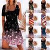 Women's Fashion Casual Printed Lapel Button Short Sleeve Clothing Straps Dress