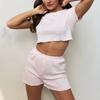 This women's summer fashion ensemble includes a short round neck T-shirt and matching shorts, perfect for mixing and matching with sandals or sneakers.