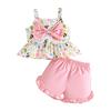 Bebek Kız Yaz Kıyafet Setleri Kısa Kollu O Boyun Çiçekli Üstler + Düz Renk PP Şort