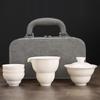 Mutton Fat Jade Beyaz Porselen Seyahat Kung Fu Çay Seti Dört Fincanlık Bir Tencere Taşınabilir Çanta Seti Açık Hava Seramik Çay Hızlı Fincan
