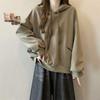 İlkbahar Sonbahar Gevşek Kapşonlu Kapüşonlular Kadın Rahat Düz Renk Tüm Eşleşen Kazaklar Kore Tarzı Damla Kollu Tişörtü