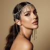 Lüks Zarif Püskül Alın Başlığı Boş Tam Yapay Elmas Şapka Akşam Elbisesi Takı Seksi Gelin Saç Zinciri Parti