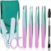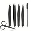 Professional Stainless Steel 6 Pack Tweezers Set and Curved Scissors for Women and Men Precision Tweezers For Eyebrows for