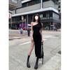 Simple Black Thin Knitted Breathable High Elastic Sexy Mature Charm Young Girl Women'S Irregular Summer Wrap Dress