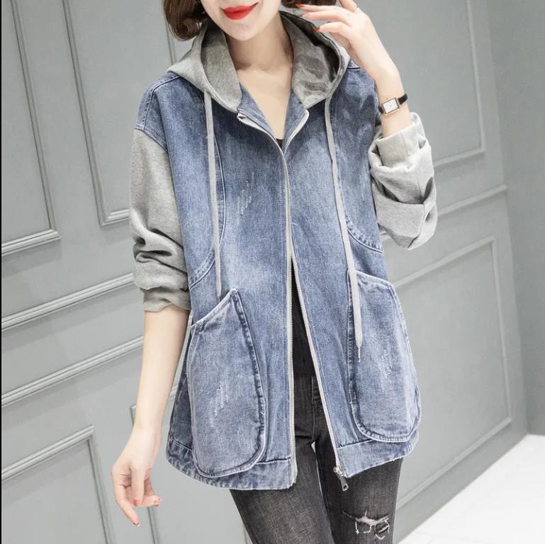 Spring and Autumn Korean Hooded Long Sleeve Denim Coat with Loose Office Lady Comfortable Leisure Women's Short Coat