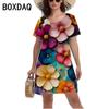Butterfly Flower Print Summer Dress Women Oversized Short Sleeve Dress Casual Pullover O-Neck Loose Party Dress Ladies Vestidos