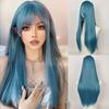 Blue Gray Wigs Air Bangs 24 Inch Straight Fiber Synthetic Wigs Heat-resistant Natural Party or Selfie For Women Daily Use Korean Fashion